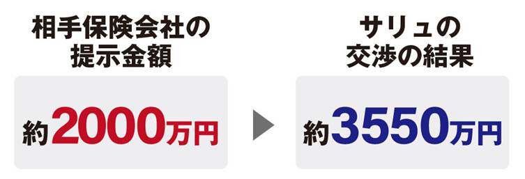 最後のケースは、怪我の後遺障害による将来的な損失を認めさせることで約1500万円増額させ、およそ3550万円の示談金を獲得した事例です。