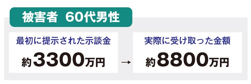 1-4.示談金を受け取る手続きを行うでも触れましたが、弁護士が介入するか否かで、賠償金が5000万円以上も異なるケースがあります。