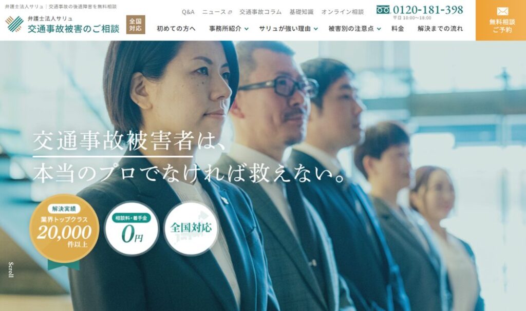 弁護士法人サリュは、創業20年を迎え、交通事故の被害者側専門の法律事務所として累計20,000件以上の解決実績があります。所属弁護士の多くが1人あたり500件~1000件以上の交通事故解決実績があり、あらゆる交通事故被害者を救済してきました。その確かな実績とノウハウで、あなたのために力を尽くします。