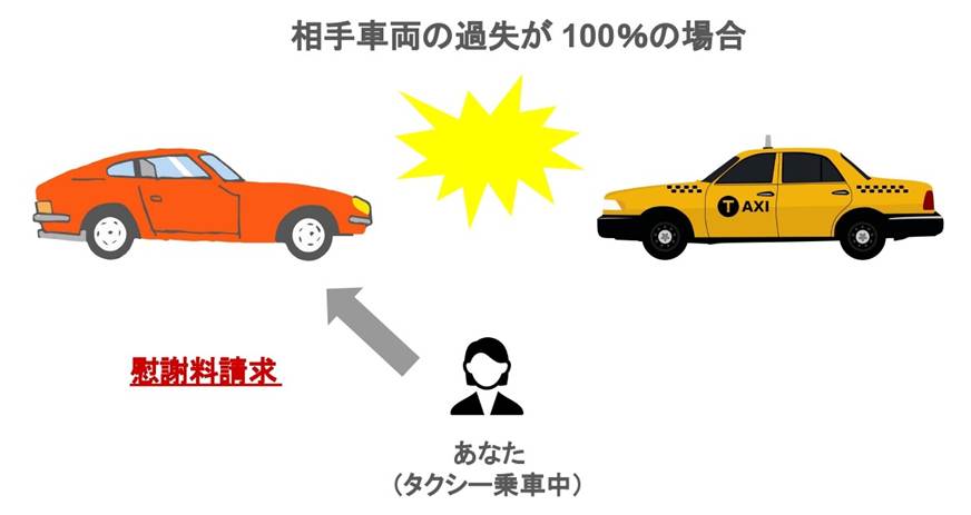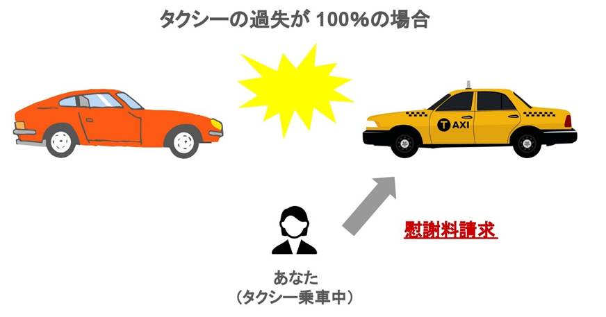 このため、例えばタクシー側に大きな過失があってあなたが怪我をしていたとしても