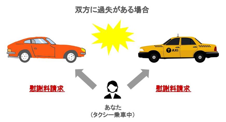 乗車中のタクシーと相手車両の双方に過失がある場合、タクシー側と相手車両側の双方に慰謝料を請求・交渉できます。