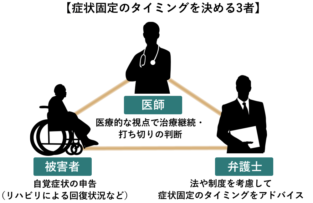 症状固定を決定して治療を打ち切るのは主治医の役割ですが、タイミングに関しては