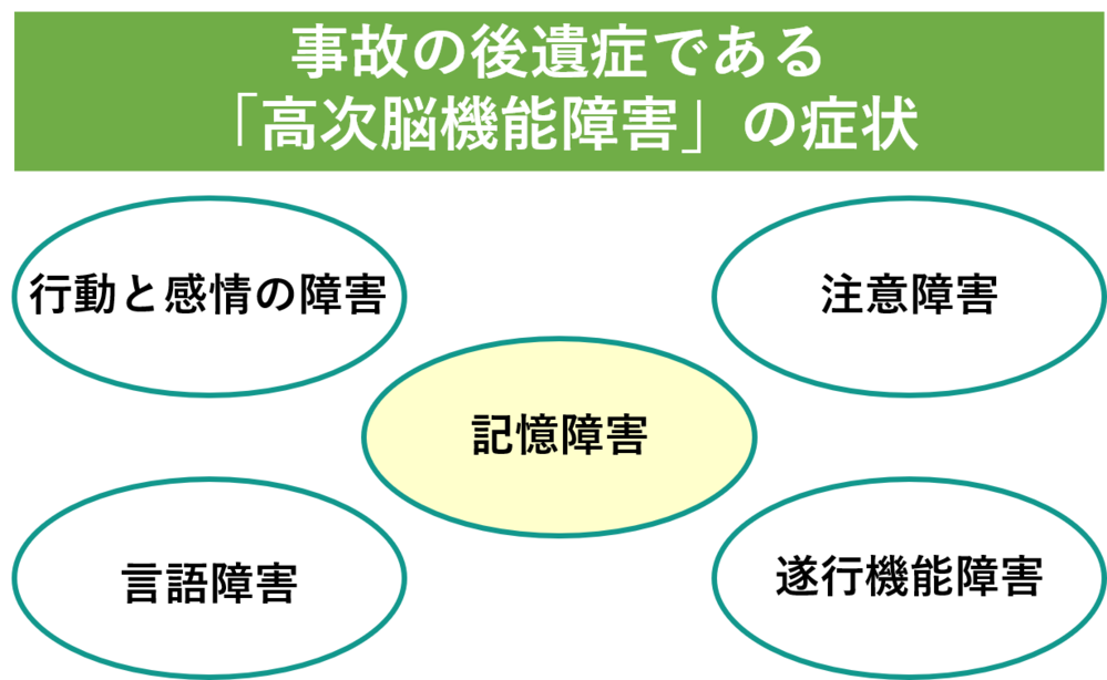 事故による記憶障害は、高次脳機能障害の症状の可能性が高いです。