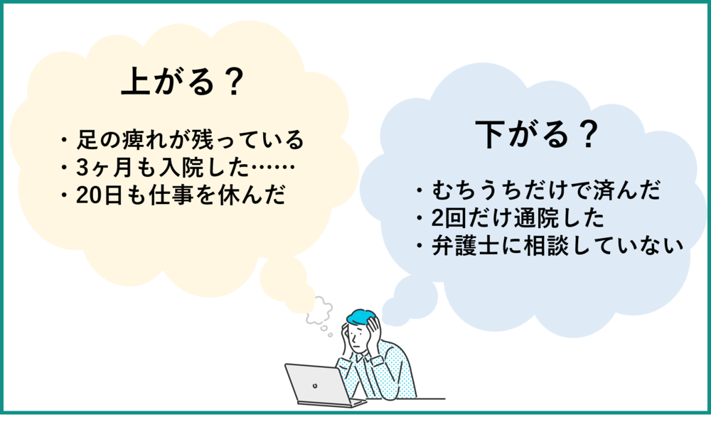 また、示談金が上がる・下がるポイントは、主に以下の5つです。