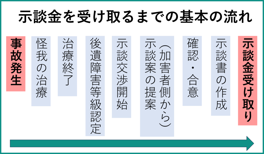 交通事故に遭ってから、示談金を受け取るまでの流れをイメージできましたか?