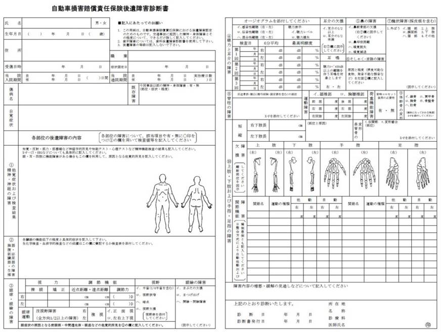 患者が「後遺障害等級認定」を申請するために必要となる書類で、通院している病院の医師に、患者がお願いして書いてもらう書類です。