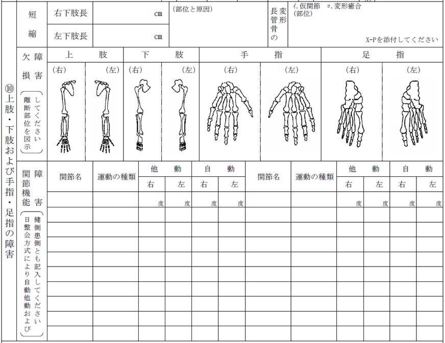 | 悪い例 ・醜状痕があるのに、醜状の欄に記載がない ・聴力障害があるのに、聴力測定の結果が記載されていない (症状を客観的に裏付ける証拠が記載されていないと、認定されません。) ・可動域制限があるのに、可動域の記載がない (特に、自賠責保険の可動域制限などの機能障害の認定は、原則として自動値ではなく他動値を考慮して等級該当性を判断します。自動値のみの記載だと、認定されない場合があります。) ・「原因不明」「異常なし」など、自覚症状を裏付けできない内容が記載されている ・自覚症状を裏付けるための必要な検査を行っていない場合も、後遺障害を認定できない |