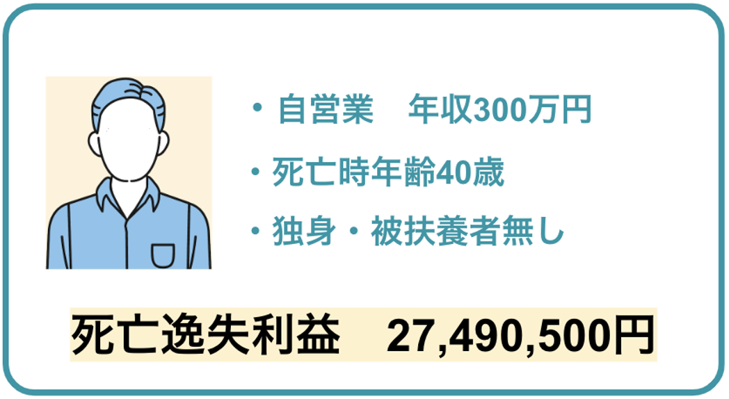 2-2.年収300万、死亡時年齢40才独身の自営業の例