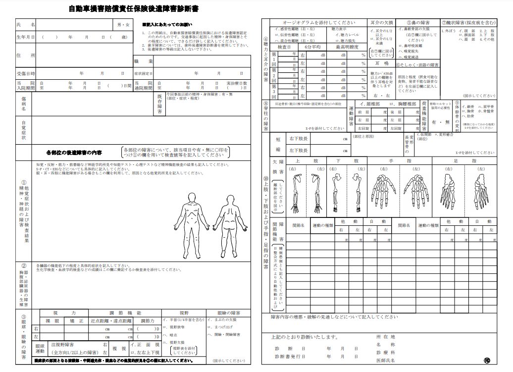 | 後遺障害認定に必要な書類のこと。 これをもとに、専門機関が等級を決定する。 |