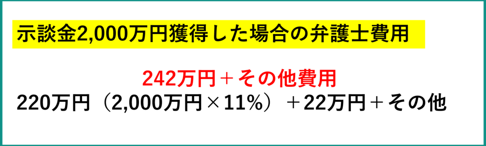 例えば、サリュが介入した後に示談金2,000万円を獲得した場合は、以下の費用がかかります。