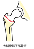 大腿骨の一番上の球形の部分(骨頭)のすぐ下の細くなっているところの骨折を指します。骨癒合しづらい部位で、偽関節になることもあります。また、骨頭壊死にいたることもあるなど、慎重な治療が必要です。