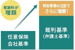サリュでは、特別事情を立証して裁判基準よりも増額したケースが数多くあります。行為態様の悪質性や症状の重篤さの程度を主張立証することによって増額に成功しています。